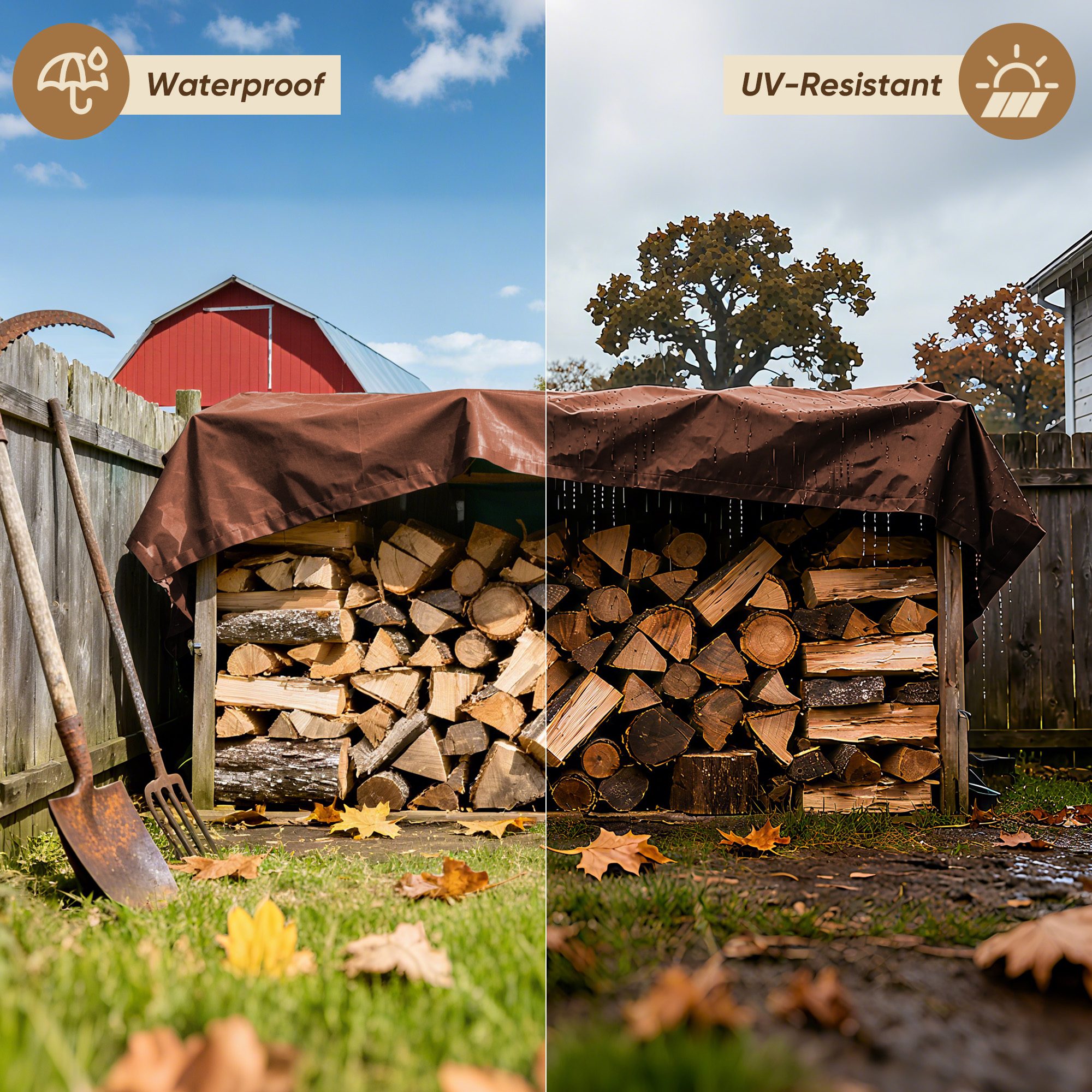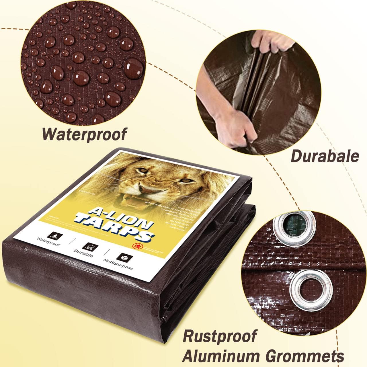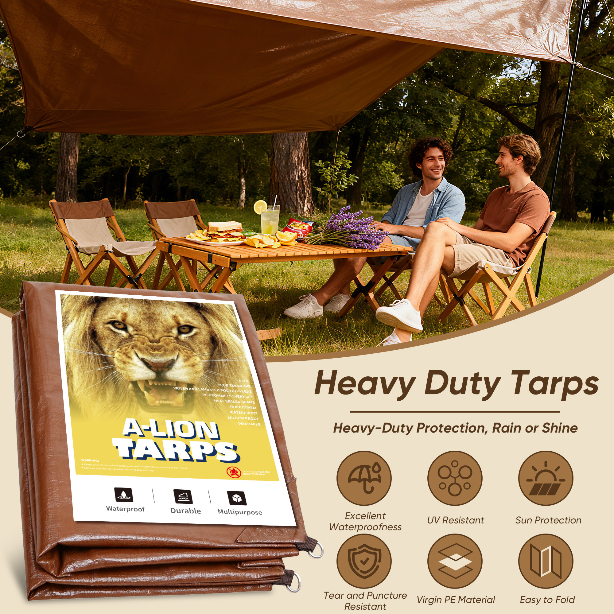 Heavy Duty Tarp Cover, Brown/Silver, Waterproof Weather Resistant, Extra Thick 10 Mil Polyethylene, Multi Purpose Protective Cover with Grommets